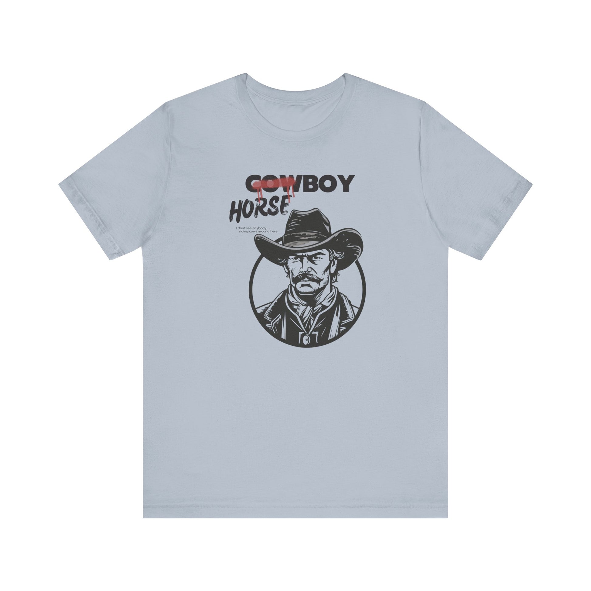 Introducing the ultimate Unisex Jersey Short Sleeve Tee! Crafted from 100% Airlume combed and ring-spun cotton, this tee is designed for comfort and style. It's lightweight and breathable, perfect for layering during any season. The classic crew neckline adds a touch of sophistication, making it suitable for casual days out or semi-formal gatherings. Ideal for cowboys and lovers of Western themes, this shirt captures the spirit of adventure and freedom. It's perfect for holidays like Father's Day, birthdays, or just as a thoughtful gift for any cowboy enthusiast. Embrace a laid-back vibe while making a statement!